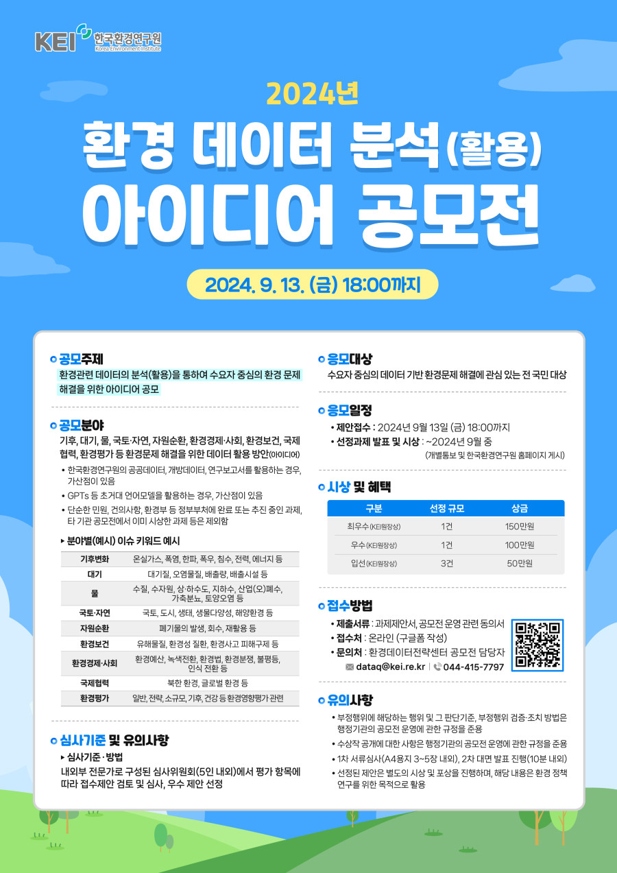 2024년도 한국환경연구원 환경 데이터 분석(활용) 아이디어 공모전 최우수상 수상 작성일 24-10-22 09:03