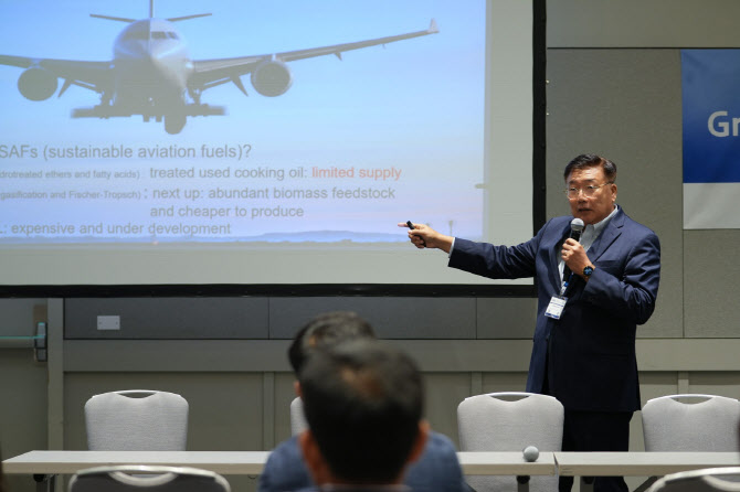 두 번째 세션에서는 자원을 활용한 기술에 초점을 맞춘 발표들이 이어졌다. 한국생산기술연구원·나노인텍 컨소시엄의 정다운 선임연구원은 탄소 중립형 차세대 리튬 농축 기술을, 정헌 한국에너지기술연구원의 책임연구원은 바이오매스를 활용한 지속가능 항공유(SAF) 생산 기술을 발표했다.