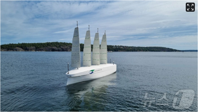스웨덴 왈레니우스 해운이 스웨덴 국립연구원(RISE) 해사부문과 협력해 개발한 '첨단 돛' 탑재 선박 '오션버드' 모습(The Ocean Bird 홈페이지) ⓒ 뉴스1
