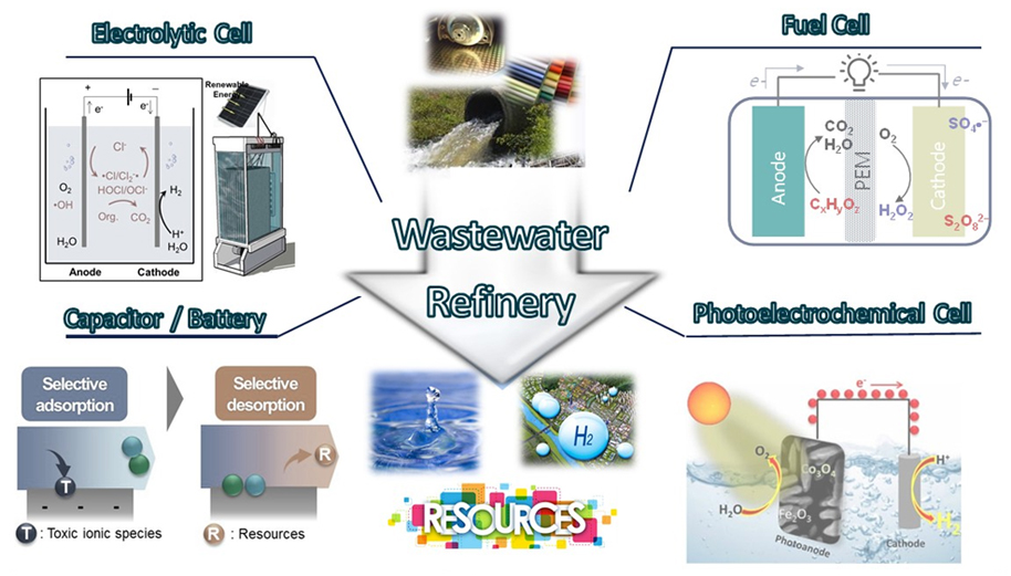 하폐수 변환 가속화 연구실은 환경전기화학 기반으로 하수를 정제하여 재이용수, 에너지, 자원으로 변환하는 기술을 추구합니다. 수전해, 연료전지, 축전지/배터리, 태양전지에 활용되는 전기화학의 기본 원리를 응용하여 에너지 변환 기능을 유지하면서 환경정화(수처리)와 자원회수의 추가 기능을 위한 촉매 및 공정을 개발하고 있습니다.