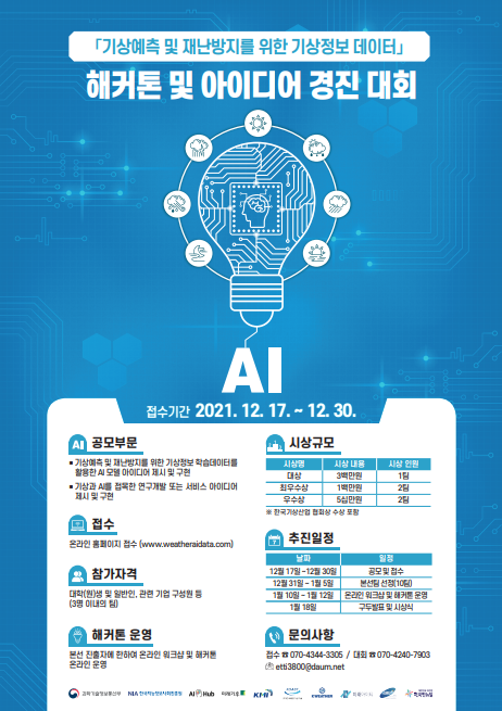 대회명: 기상예측 및 재난방지를 위한 기상정보 데이터 해커톤 및 아이디어 경진 대회