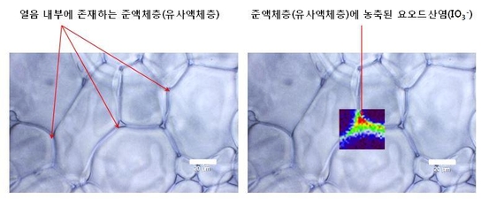 얼음 결정 사이 공간에 요오드산염의 농도를 확인한 모습. /극지연구소 제공