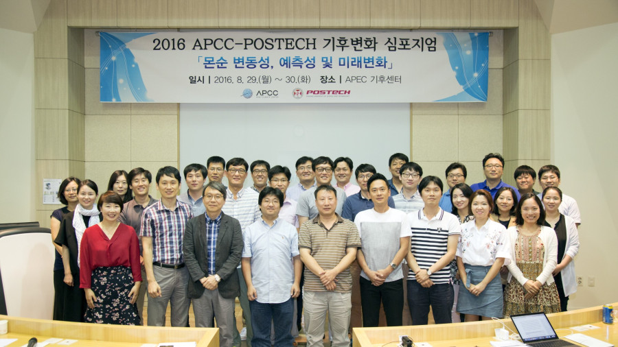 APEC 기후센터(APCC)와 POSTECH 환경공학부가 공동으로 주최한 2016 기후변화 심포지움이 8월 29일-30일 양일간 부산 APCC에서 개최되었습니다. POSTECH, 부산대, 한양대, UNIST, 전남대, GIST, 연세대, 이화여대, 서울대, SUSTECH 등 국내외 대학과 기상청, 국립기상과학원, 해양과기원, 극지연구소, APCC, KIAPS 등 국내 연구소의 기후과학 전문가 50명 이상이 참가하여, 동아시아 몬순의 변동성, 예측성, 및 미래변화를 중심으로 최신 연구결과들을 발표하고, 향후 연구방향과 공동연구 방안에 대한 심도있는 토의를 진행하였습니다.
