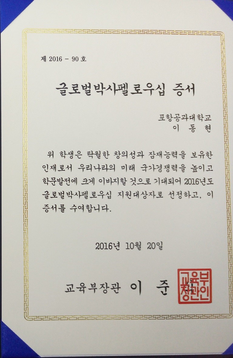 환경공학부 박사과정 이동현 2016 글로벌 박사 펠로우십 선정