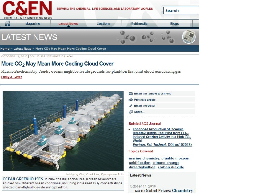이번 연구 결과는 미래 해양의 이산화탄소 농도 상승이 동물플랑크톤의 섭식률에 영향을 주어 구름의 응결핵으로 작용할 수 있는 기후냉각가스(Dimethylsulfide)의 생성 증가를 가져올 수 있다는 가능성을 제시한 것으로, 환경분야 최고 권위의 과학 전문지 ‘Environmental Science & Technology’ 온라인 판(2010년 9월 30일)에 발표되었고, 미국화학회 소식지인 ‘Chemical & Engineering News’ 최신호에 게재되었다.