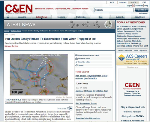 얼음 속에 존재하는 산화철 분진입자가 햇빛에 의해 미세조류에게 필요한 철분으로 쉽게 변한다는 사실이 국내 연구진에 의해 밝혀졌다.
