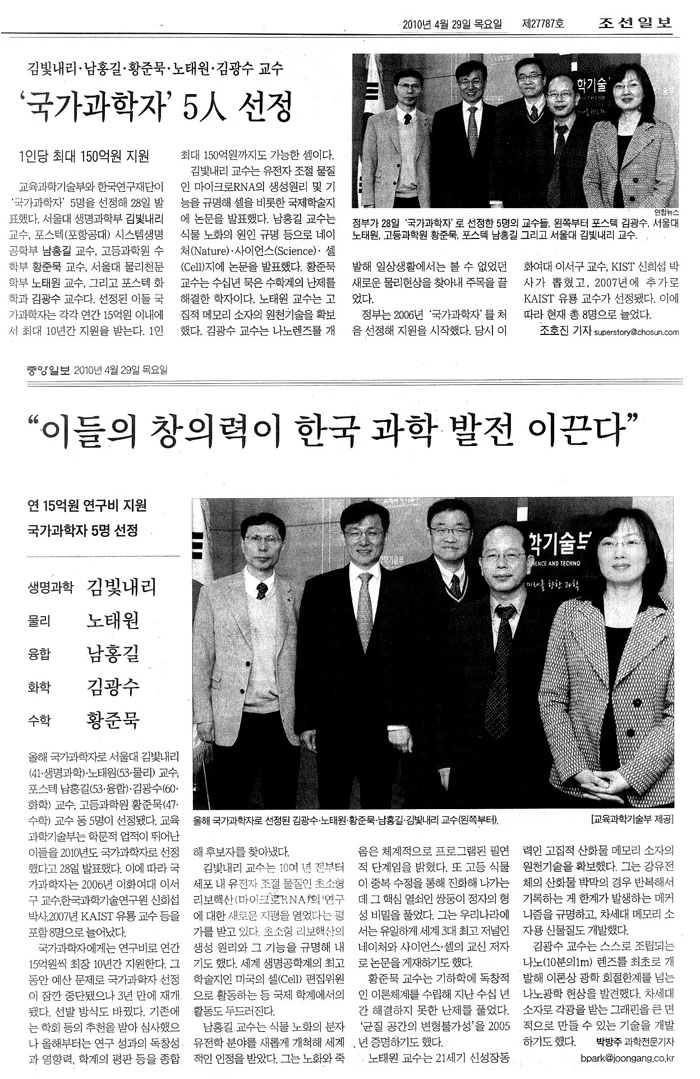 화학 김광수·생명 남홍길, 국가과학자 선정 / Two POSTECH Professors Named 'National Scientists'